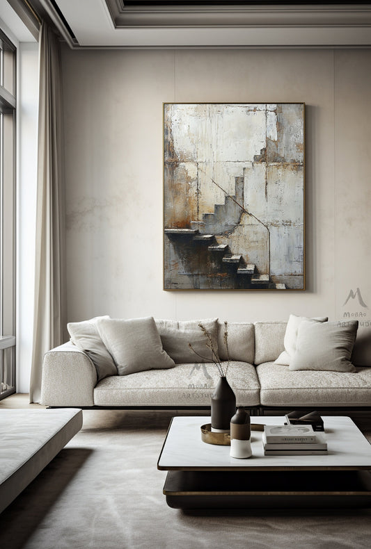 Beige Abstract Painting Boho Wall Art Neutral Wall Art Wabi Sabi Wall Art Gray Canvas Painting Brown Abstract Art Beige Wall Art #Treppe-3