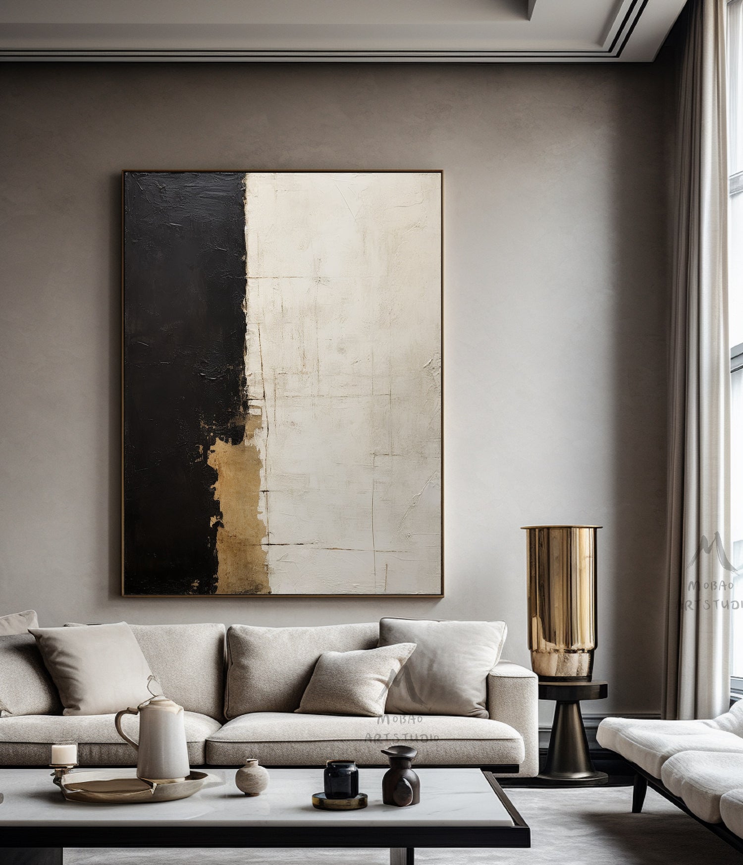 Beige Abstract Painting Beige Textured Canvas Painting Black Wall Art Wabi Sabi Wall Art Large Black Minimalist Wall Art Neutral Wall Decor