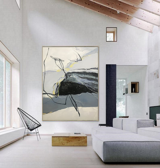 Large Wall Abstract Painting Original Minimalist Abstract Painting,Large Wall Canvas Painting,Minimalist Art,Black Painting Grsay Painting