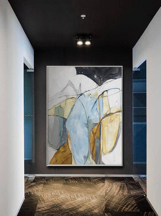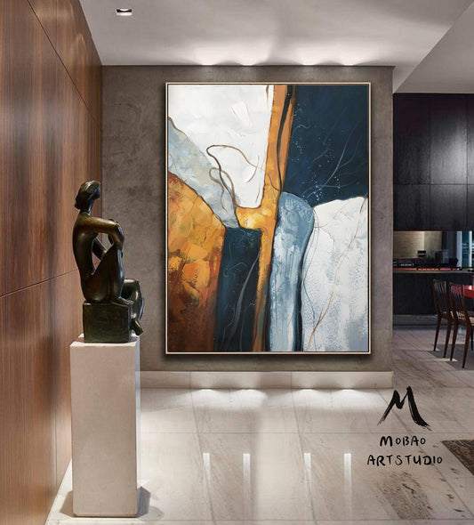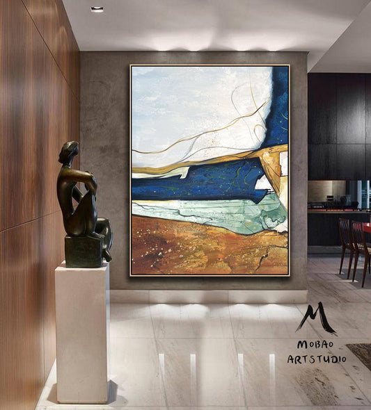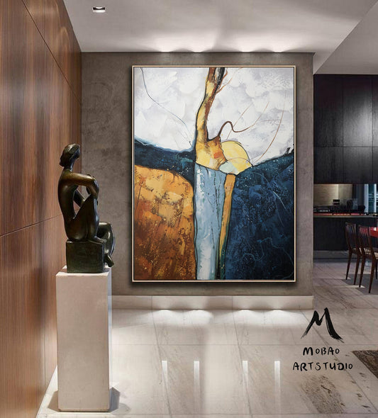 Large Minimalist Abstract Painting,Abstract Art Original Glod Painting Blue Painting, Minimalist Abstract Painting,Large Canvas Painting