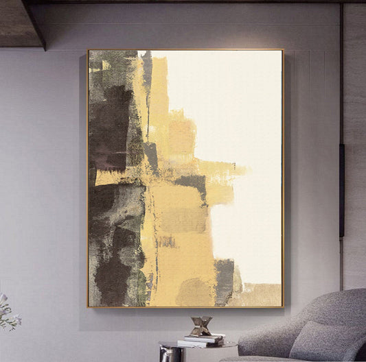 Large Abstract Painting, Minimalist Abstract Painting,Boho Wall Art, Wabi-Sabi Wall Art Yellow Art Painting,Beige Painting Yellow Painting