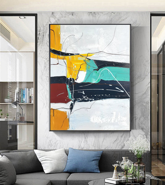 Large Abstract Painting Original Minimalist Abstract Painting Gray Painting Yellow Painting Original Abstract Painting Large Wall Canvas Art