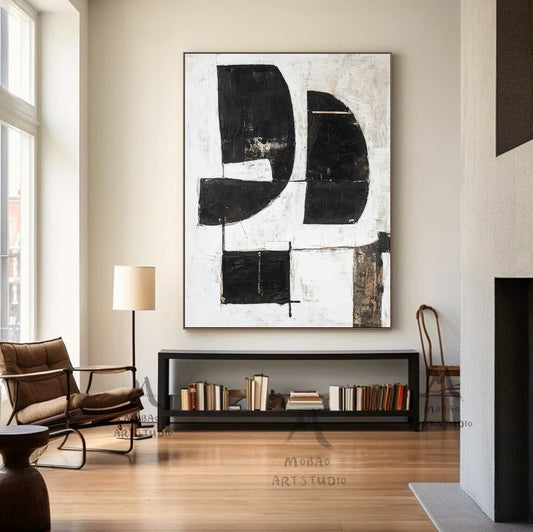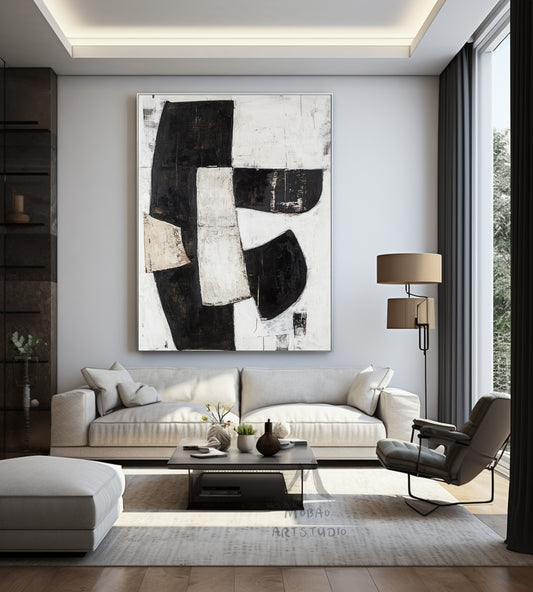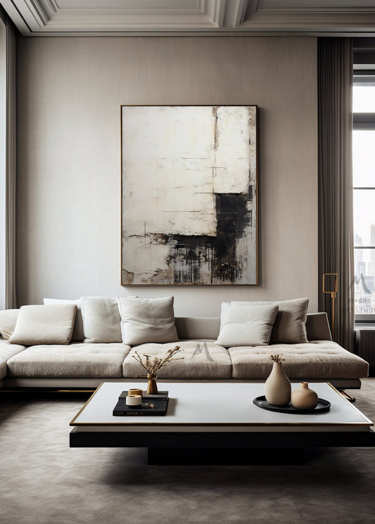 Black and white texture wall art, black minimalist painting, beige large wall painting, modern texture minimalist art painting, black wall decoration.