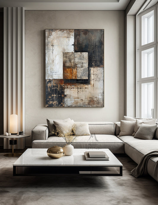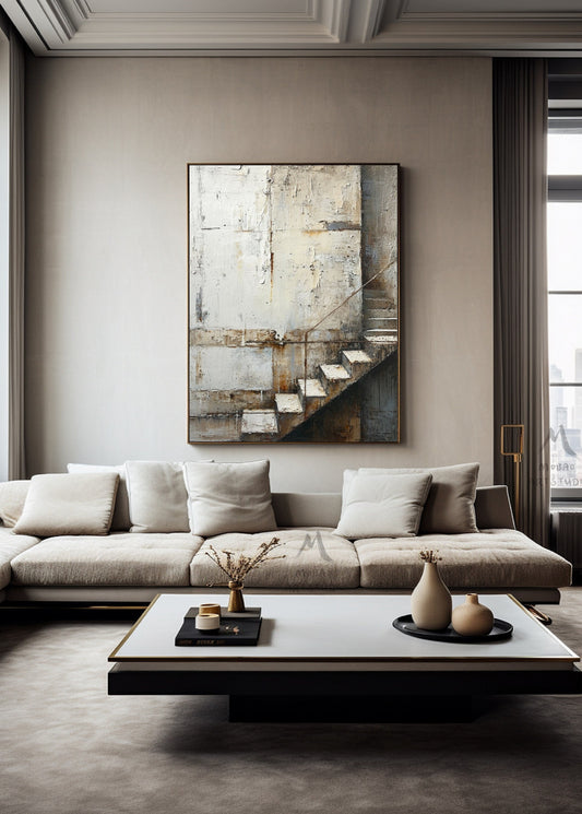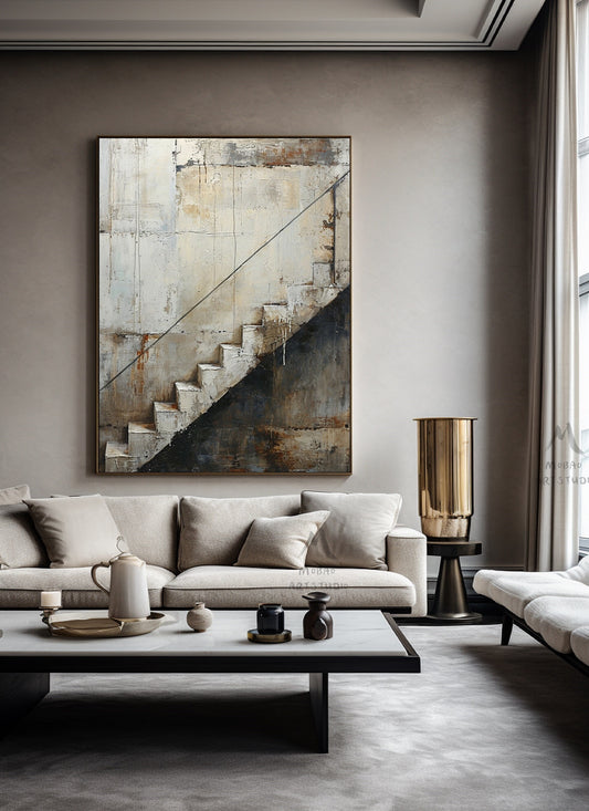 Boho Wall Art Gray Canvas Painting Beige Abstract Painting Neutral Canvas Art Wabi Sabi Wall Art Brown Abstract Art Beige Wall Art #Treppe-2