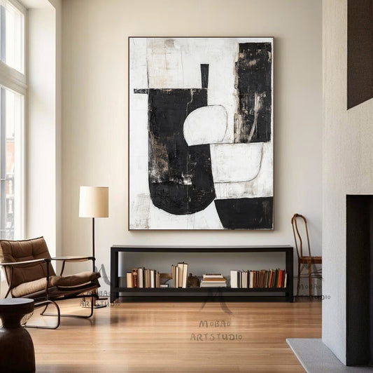 White Wabi Sabi Wall Art Boho Wall Art White Abstract Painting Black Minimalist Canvas Art Rich Textured Canvas Painting Large Neutral Art