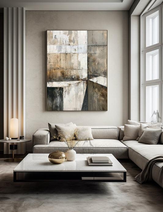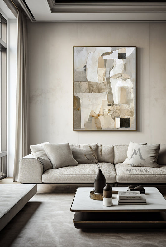 Beige Abstract Painting Boho Wall Art Neutral Wall Art Wabi Sabi Wall Art Gray Canvas Painting Brown Abstract Art Beige Wall Art #Treppe-3