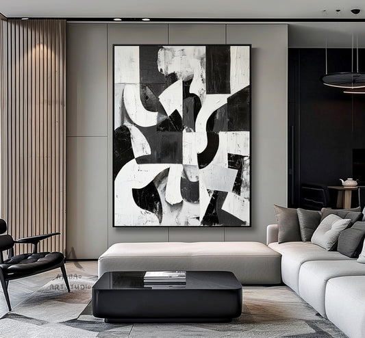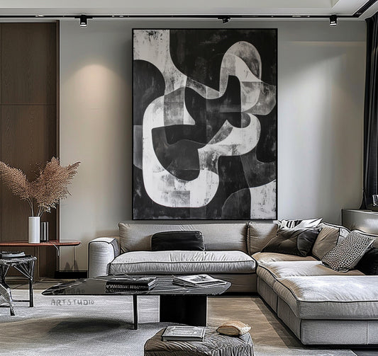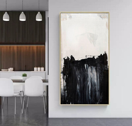 Large Black White Abstract Painting, Texture Abstract Painting, Large Minimalist abstract Painting, Large Canvas Art, Extra large wall art