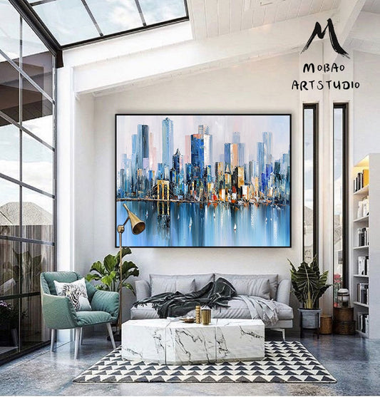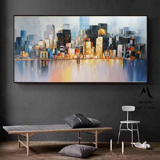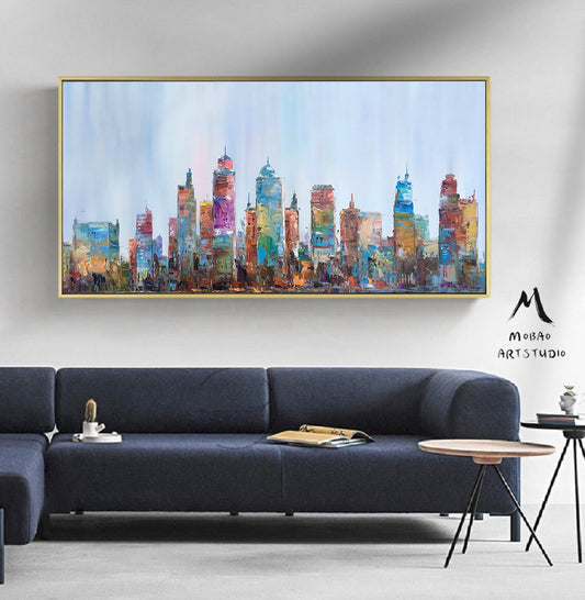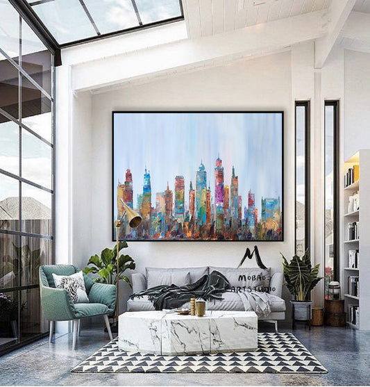 Large City abstract painting on Canvas, Wall City painting, New York city art, Modern city Wall art decor,City skyline Abstract oil painting