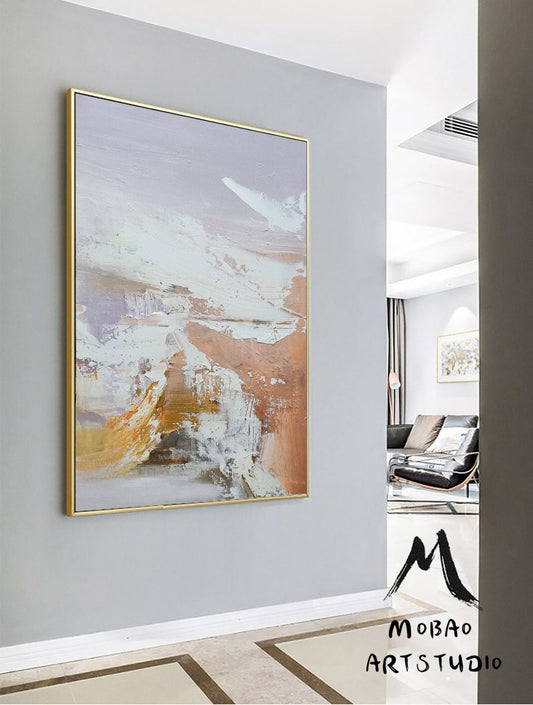 Large Abstract Painting,Original White Textured Abstract Art Modern Handmade Abstract Painting,Original Purple Oil Painting,Office Wall Art