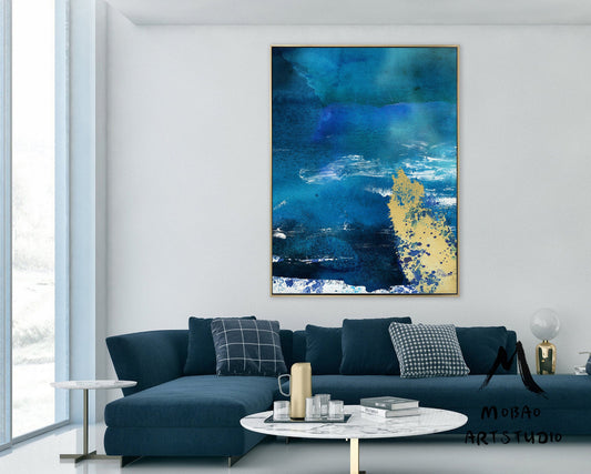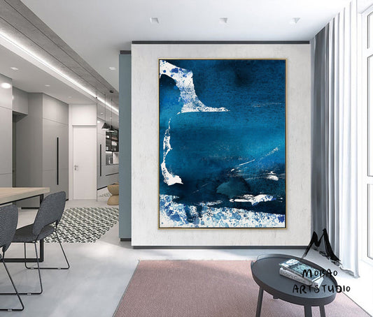 Large Blue Abstract Painting, White Painting Ocean Painting, Contemporary Art, Large Abstract Painting, Original Canvas Living Room Wall Art