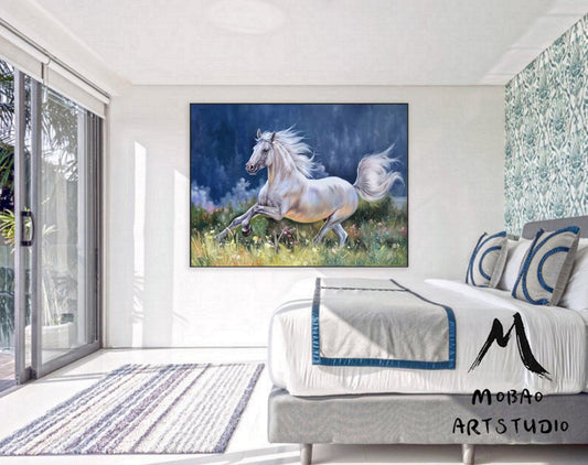 Large Canvas Art Horse Decor Horse Oil Painting White Horse Painting Large Oil Painting Horse Wall Art Large Wall Art Living Room Art #M5138