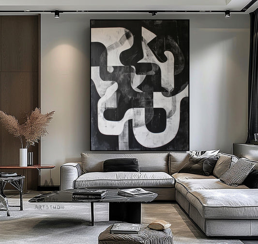 Large Abstract Painting,White Painting Black Painting, Original Minimalist Abstract Painting, Abstract Painting, Large Wall Canvas Painting