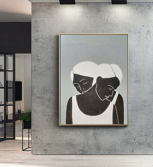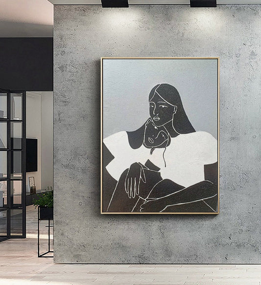 Large Black Women Abstract Painting Original,Minimalist Art,Black and White Abstract Painting, Gray Abstract Painting, Large Living Room Art
