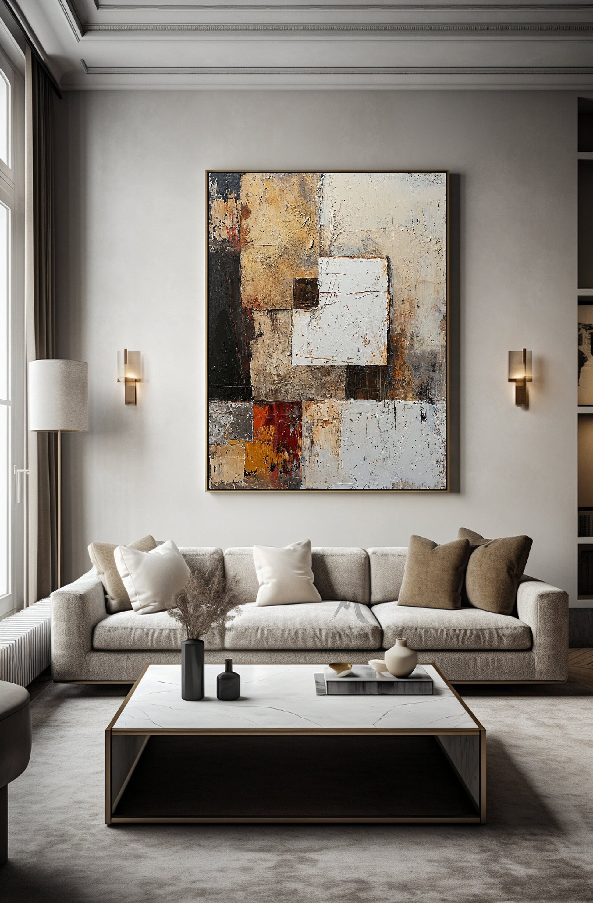 Beige Canvas Painting White Wall Art Large Texture Art Wabi Sabi Wall Art Gray Abstract Wall Art Black Minimalist Art Beige Texture Art