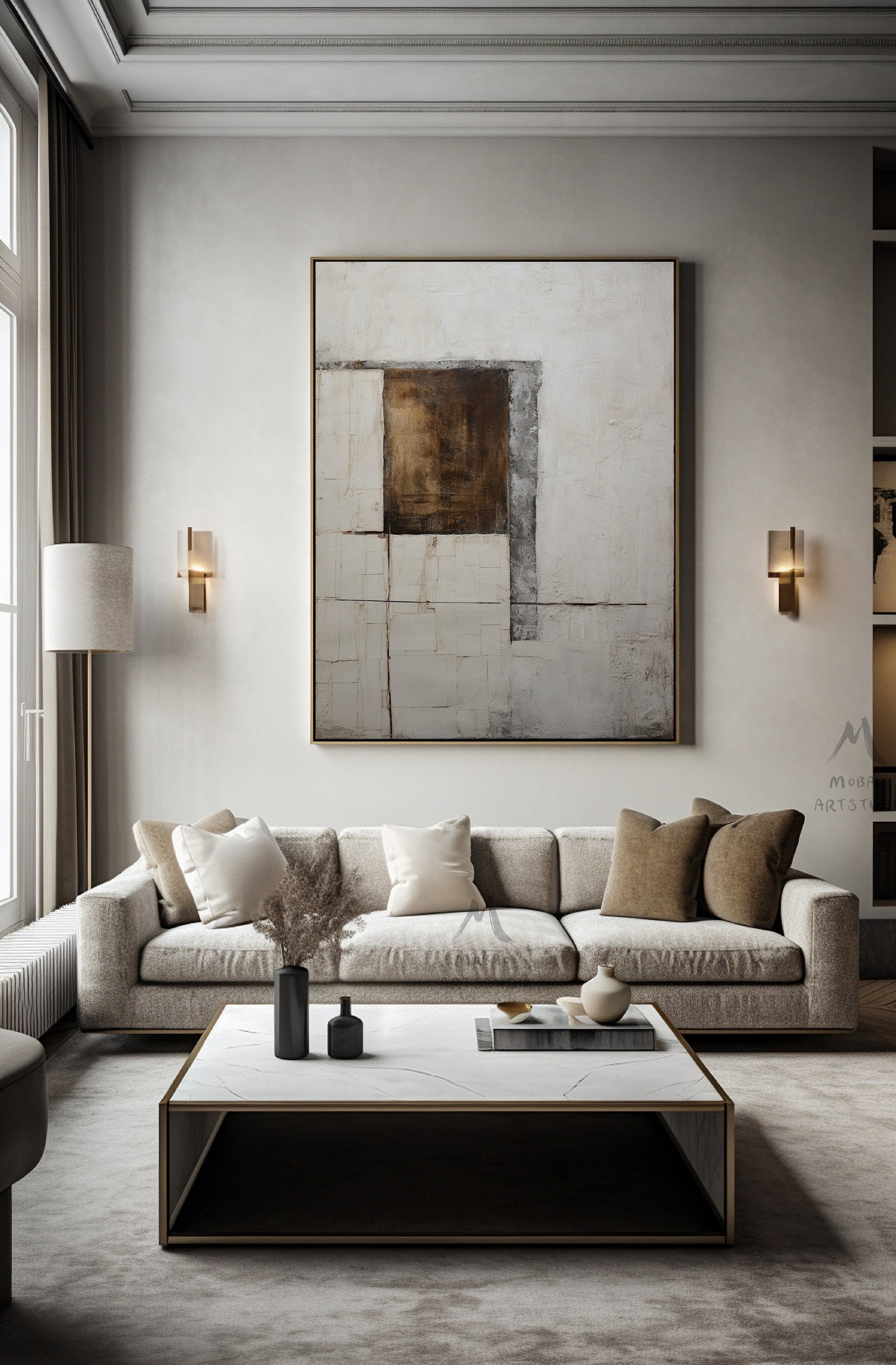 Beige Minimalist Painting Beige Wall Art Brown Abstract Art Wabi Sabi Wall Art Boho Wall Art Neutral Wall Art Large Gray Abstract Painting