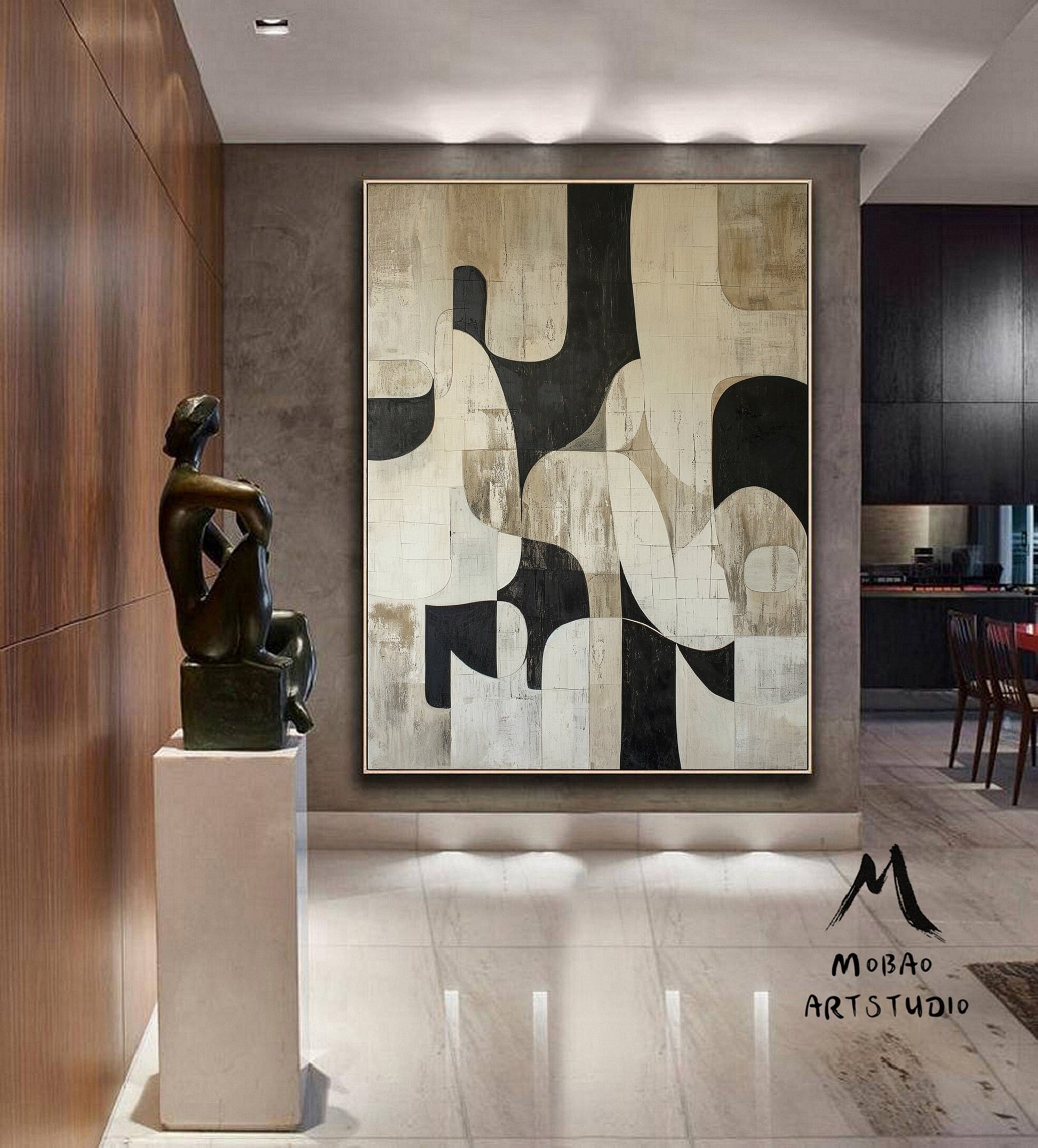 Black Wall Art Wabi Sabi Wall Art Beige Abstract Painting Large Black Minimalist Wall Art Beige Textured Canvas Painting Neutral Wall Decor