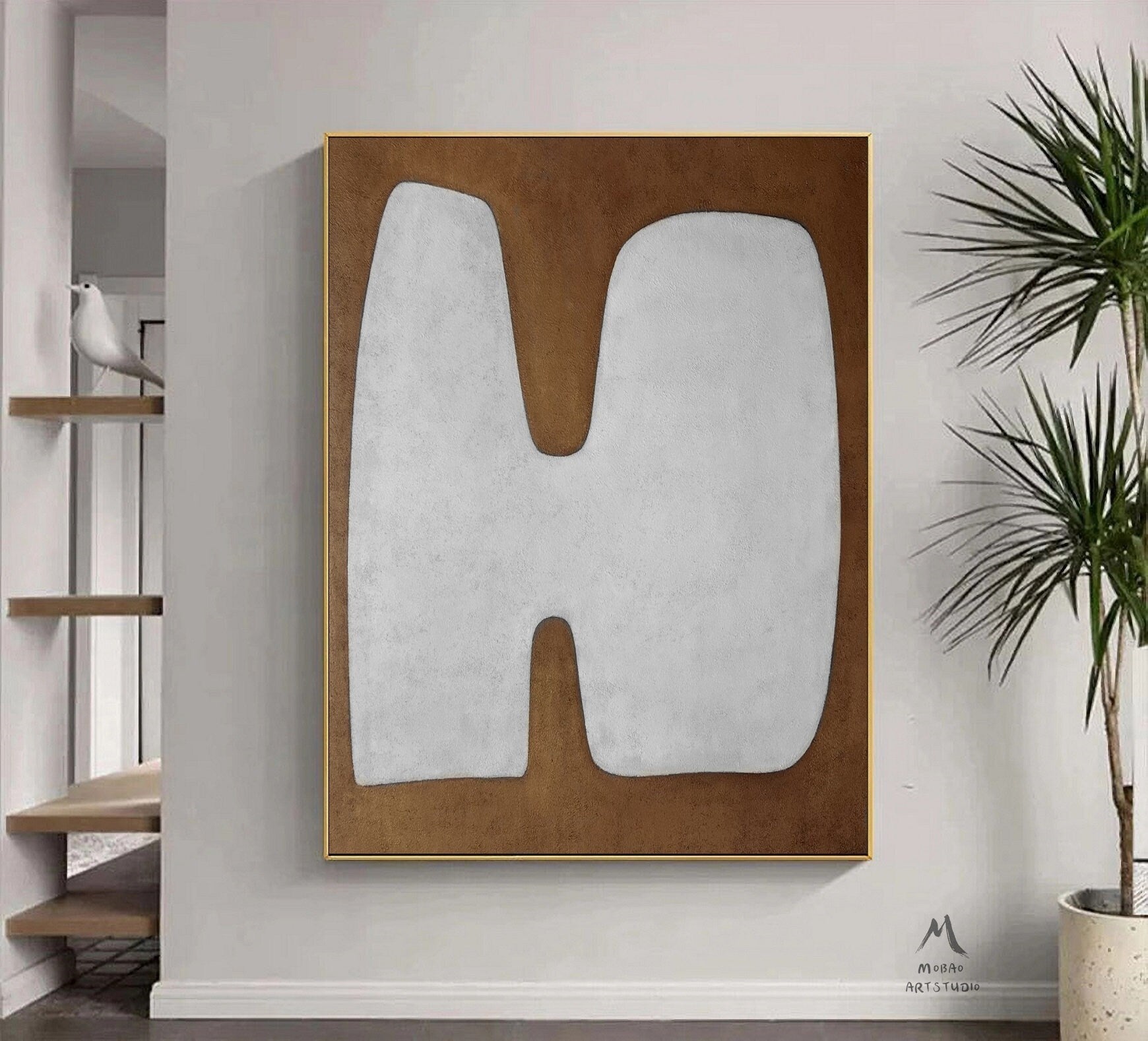 Brown Abstract Art White Minimalist Art Wabi Sabi Wall Art Brown Minimalist Art White Wall Art Neutral Abstract Painting Modern Wall Art