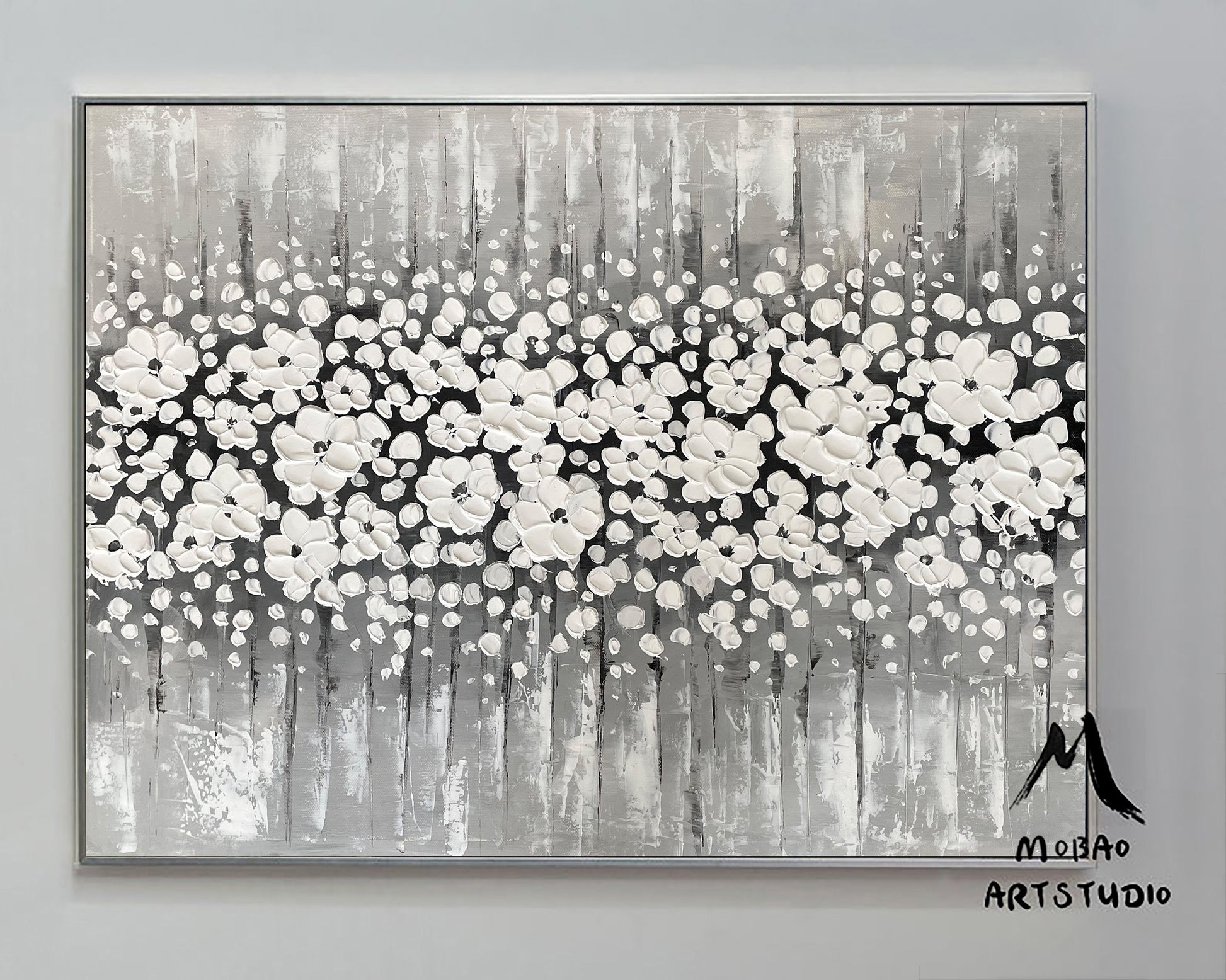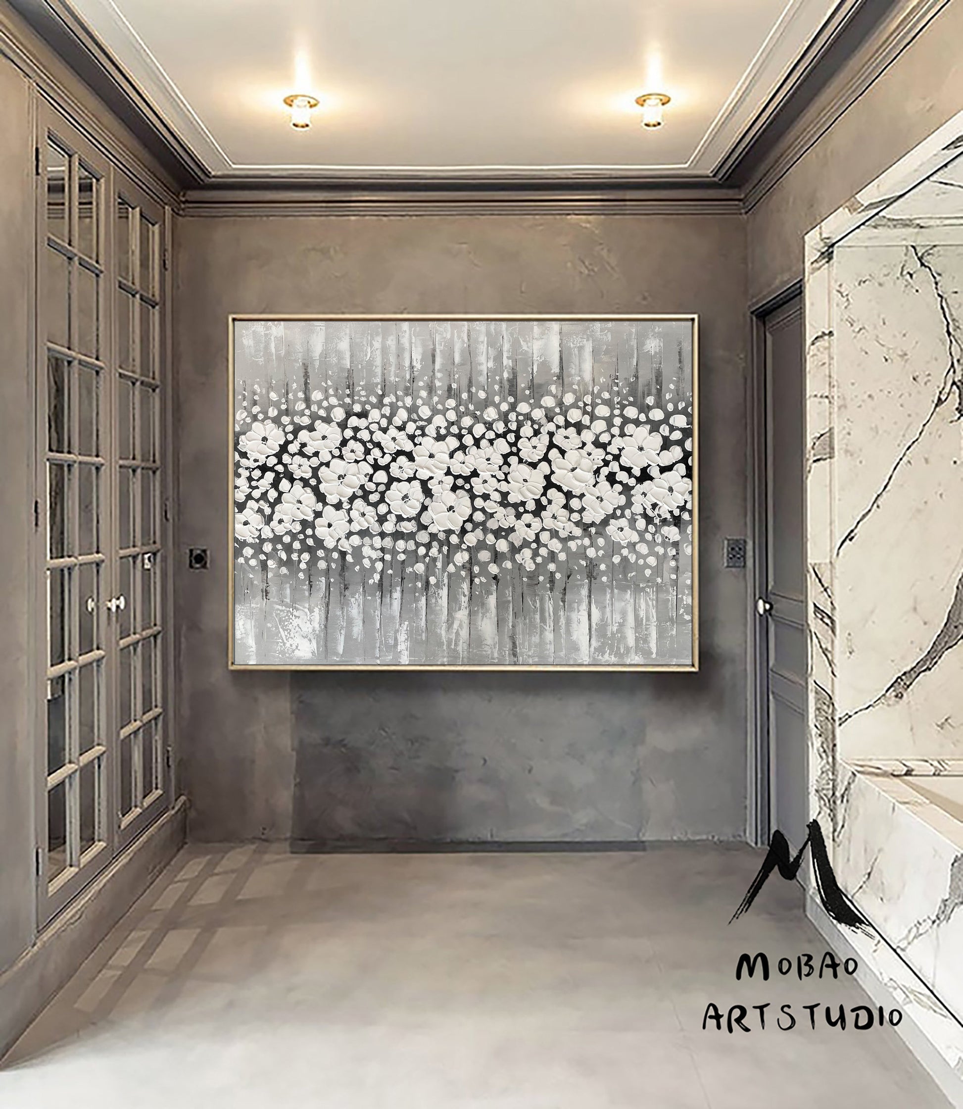 Original White Cherry Flower, White 3D Textured Art Painting,Flower Painting On Canvas,Large Wall Art,Large Textured Painting, Handmade Art