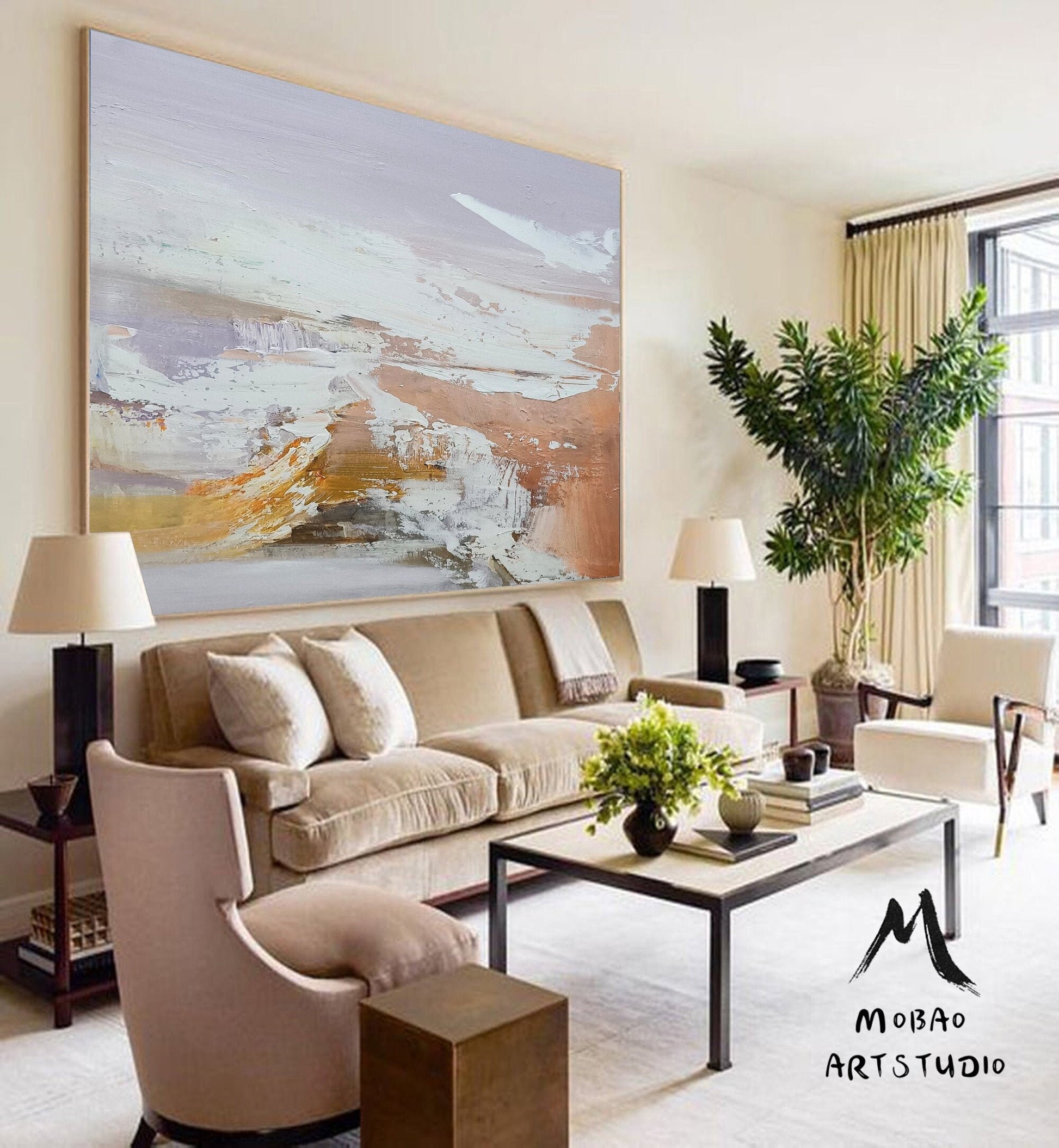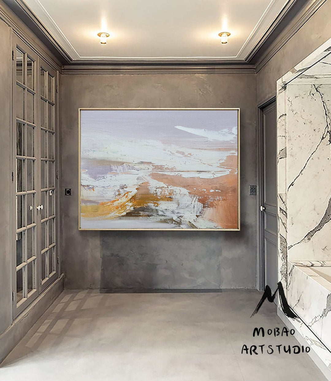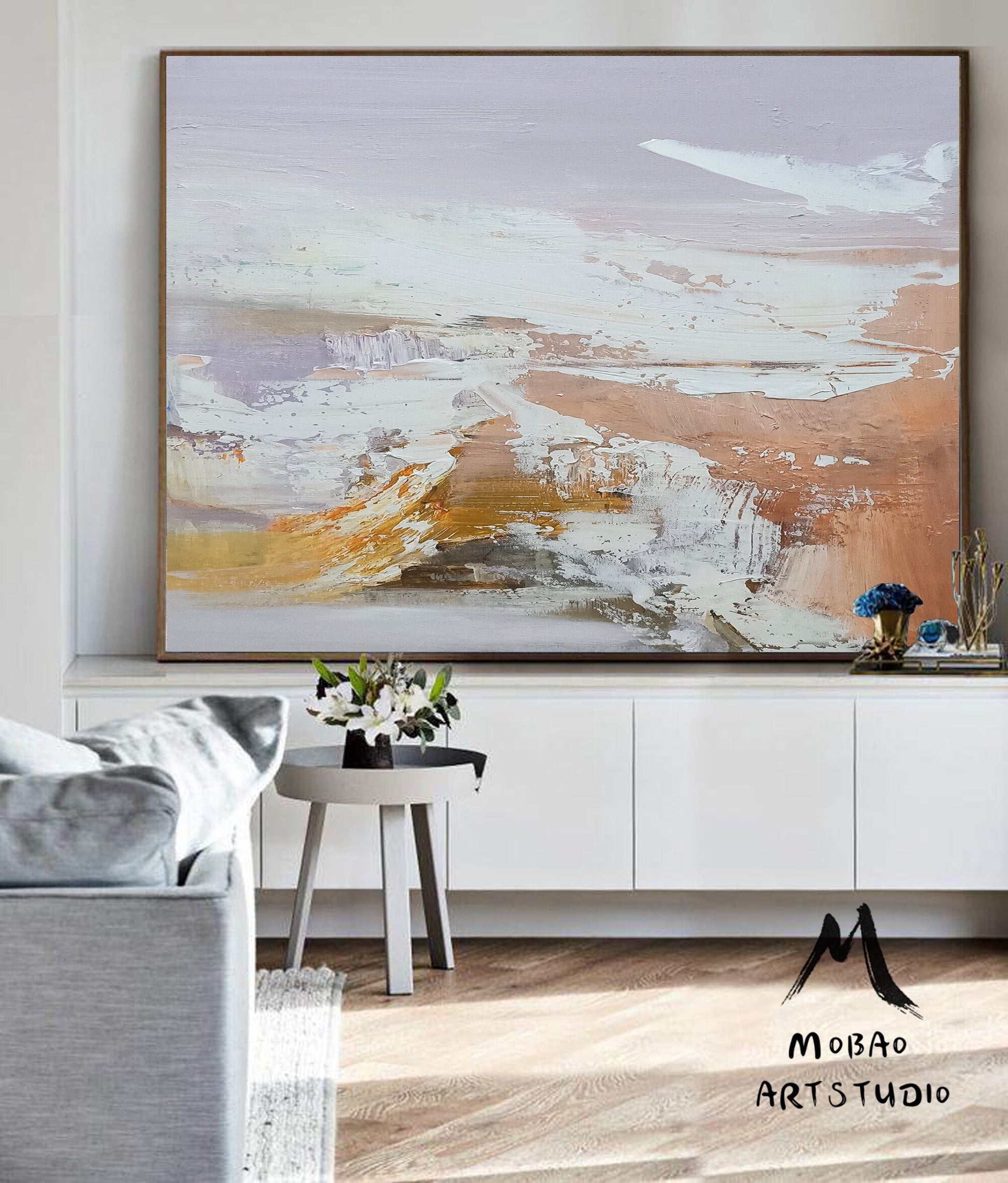 Original White Textured Abstract Art Large Abstract Painting,Modern Handmade Abstract Painting,Original Purple Oil Painting,Office Wall Art