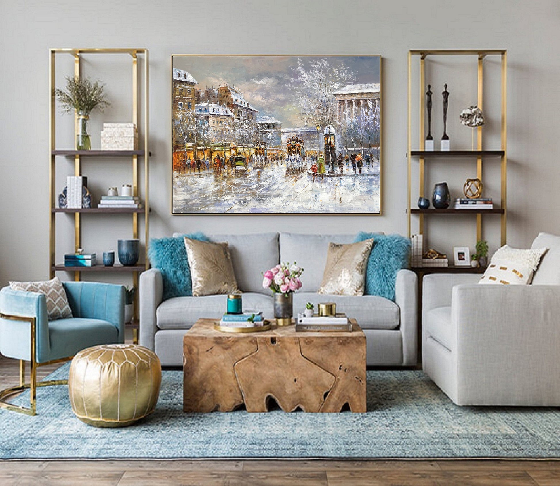 Paris City Landscape Oil Painting, Original Paris City Art Painting,People Walking In The Bustling Streets Of Paris, Christmas gift.