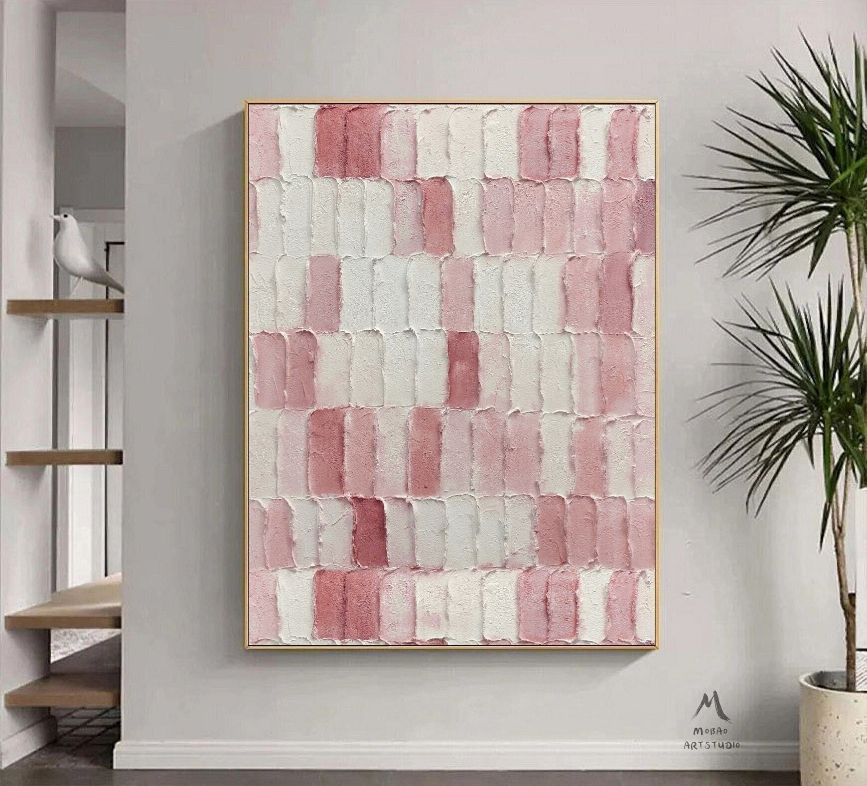 Pink Minimalist Canvas Art White 3D Texture Art Boho Wall Art White Abstract Painting Wabi Sabi Wall Art Pink Minimalist Art White Wall Art