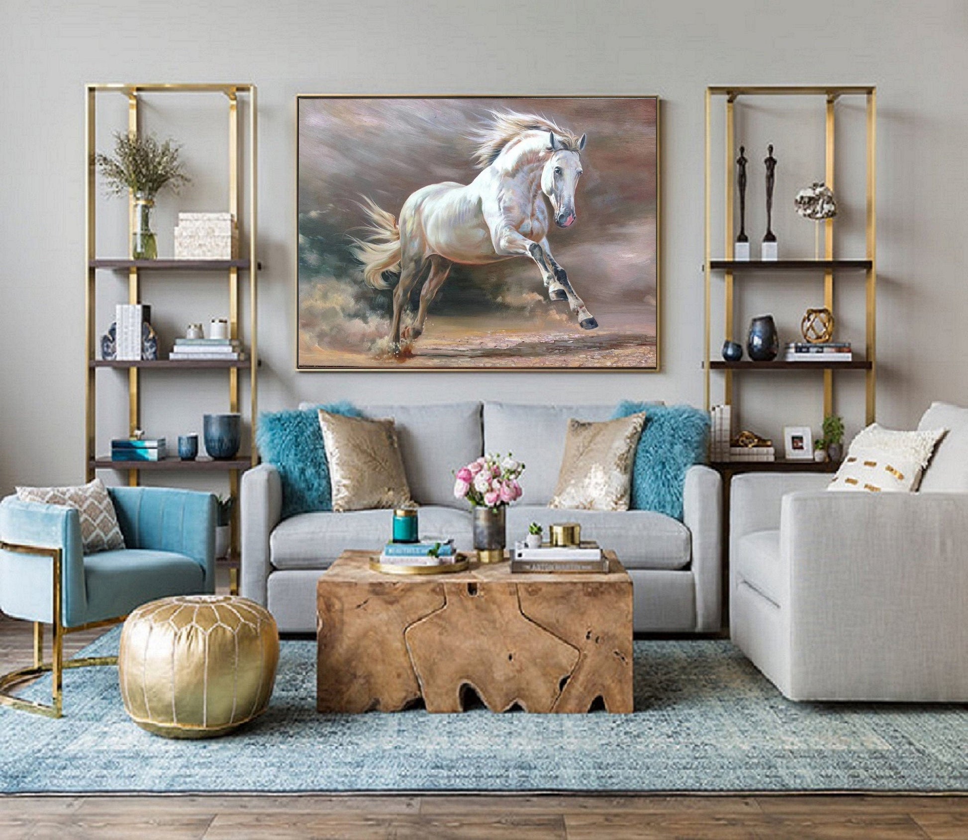 White Horse Painting Large Canvas Art Horse Decor Horse Oil Painting Large Oil Painting Horse Wall Art Large Wall Art Living Room Art #M5140