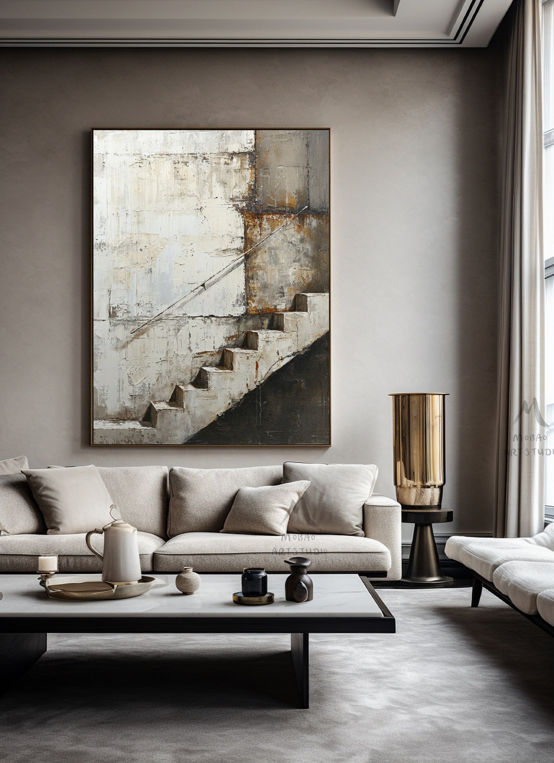 Beige Abstract Painting Gray Canvas Painting Wabi Sabi Wall Art Neutral Canvas Art Boho Wall Art Black Abstract Art Beige Wall Art #Treppe-4