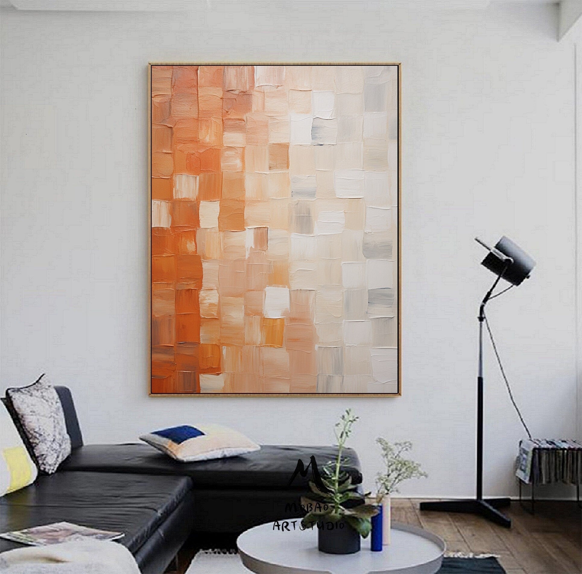 Beige Minimalist 3D Textured Art Large Textured Canvas Art Boho Wall Art Orange Minimalist Art Beige Abstract Painting Beige Wall Art