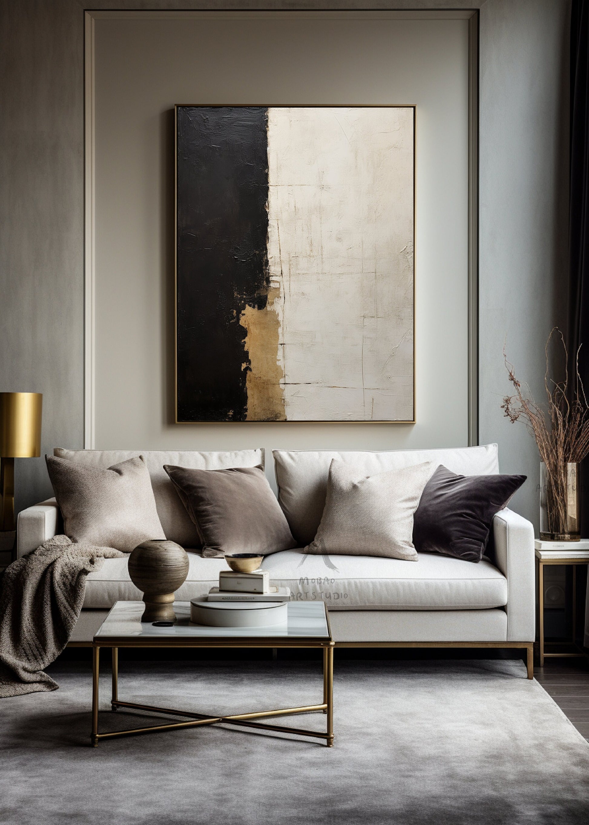Boho Wall Art Black Minimalist Painting Beige Wall Art Wabi Sabi Wall Art Neutral Canvas Wall Art Brown Abstract Art Beige Abstract Painting