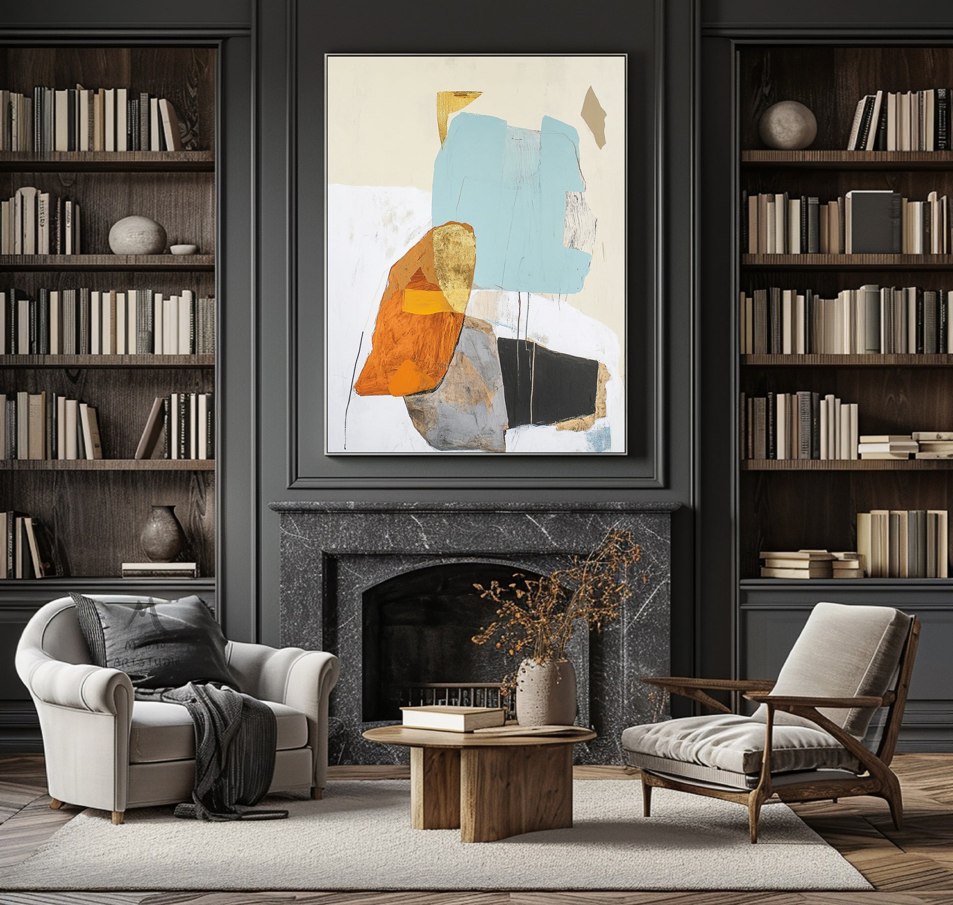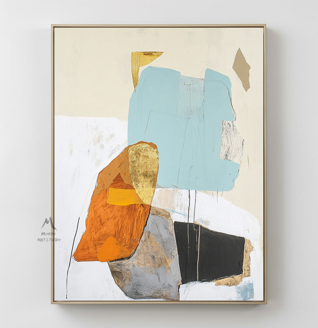 Original minimalist painting, beige abstract painting, large yellow abstract painting, black painting, light blue large wall canvas painting