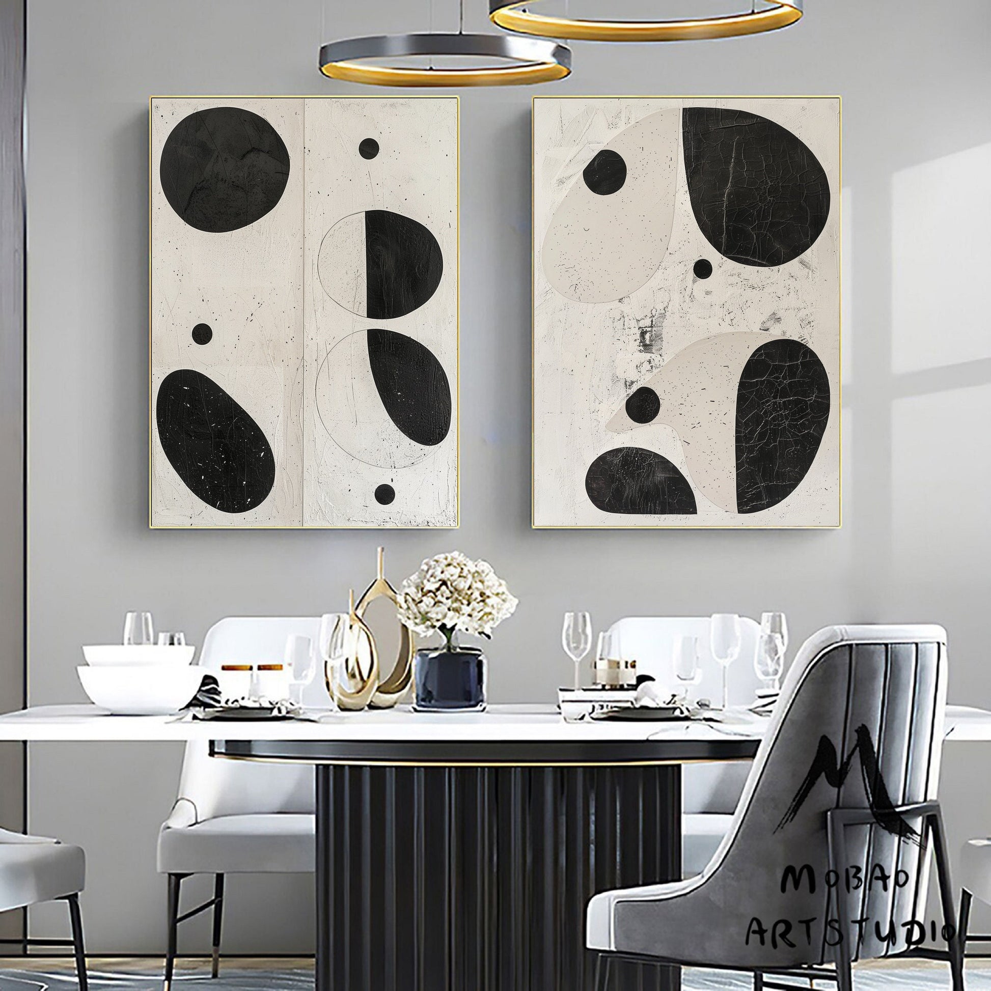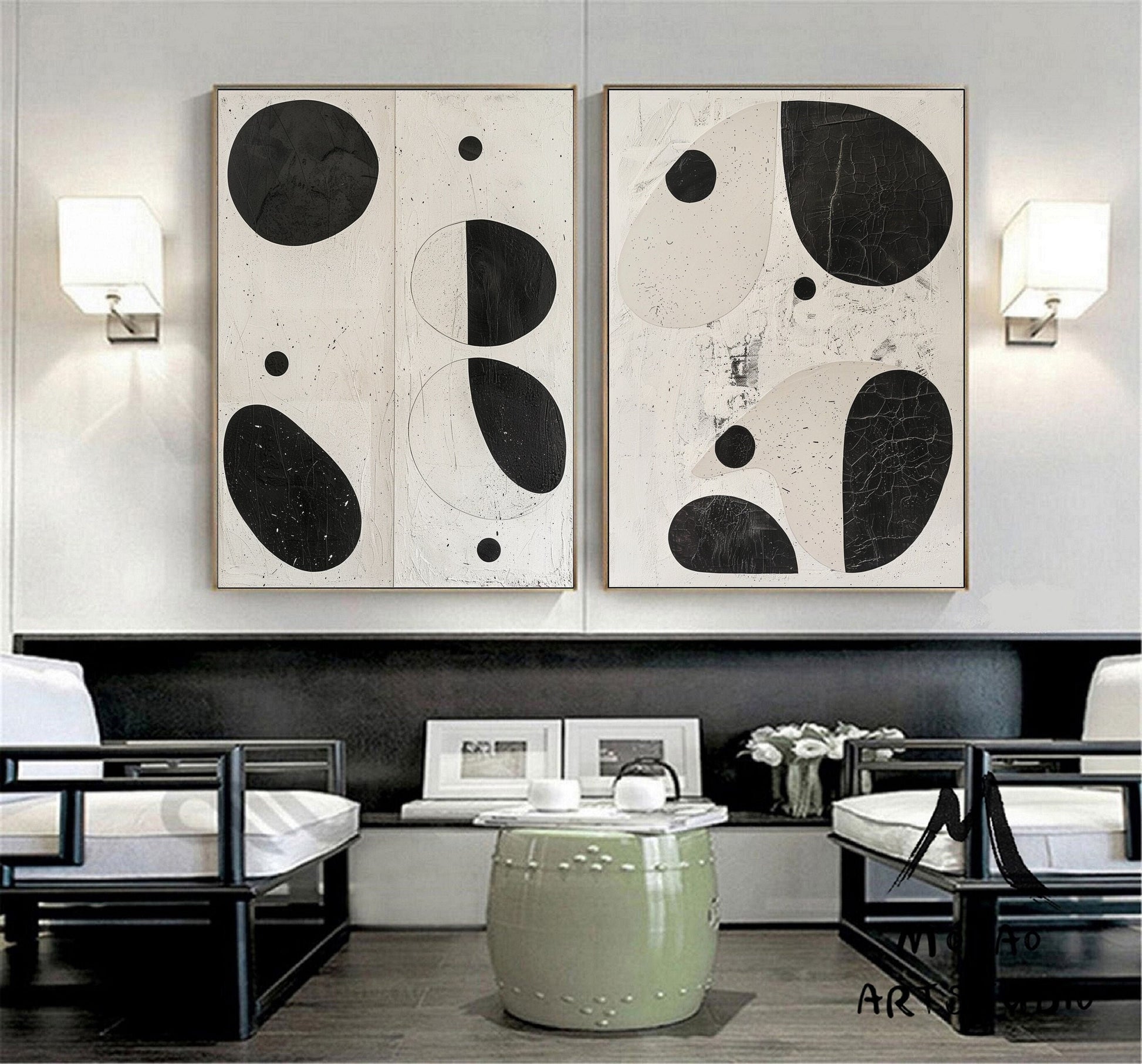 Set of 2 Black Minimalism Abstract Art Beige Textured Wall Art Painting Set of 2 Beige Wall Art Beige Abstract Art Beige Textured Wall Art